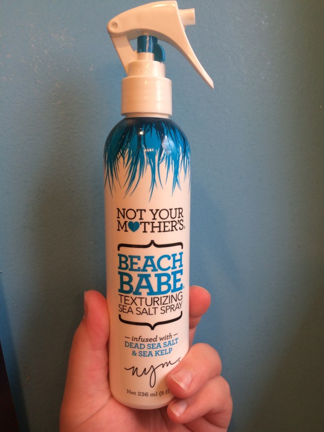 I love this product because I have VERY VERY VERY fine hair. So, it’s super easy for my curls to go flat with no texture in them. I start by parting my hair and spraying Beach Babe underneath my hair, up around the crown line, for extra volume and texture, and then tousle it down towards to roots.